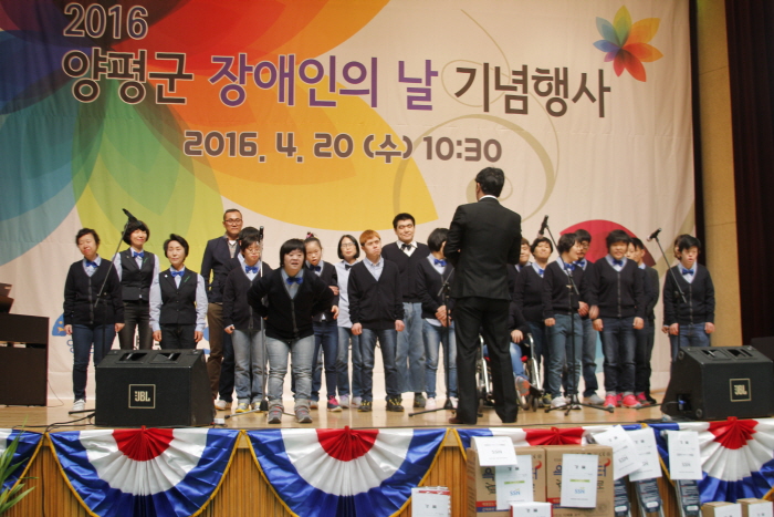 양평군 실내체육관에서 열린 장애인의 날 행사에 초청공연을 하는 창인첼린져스 합창단