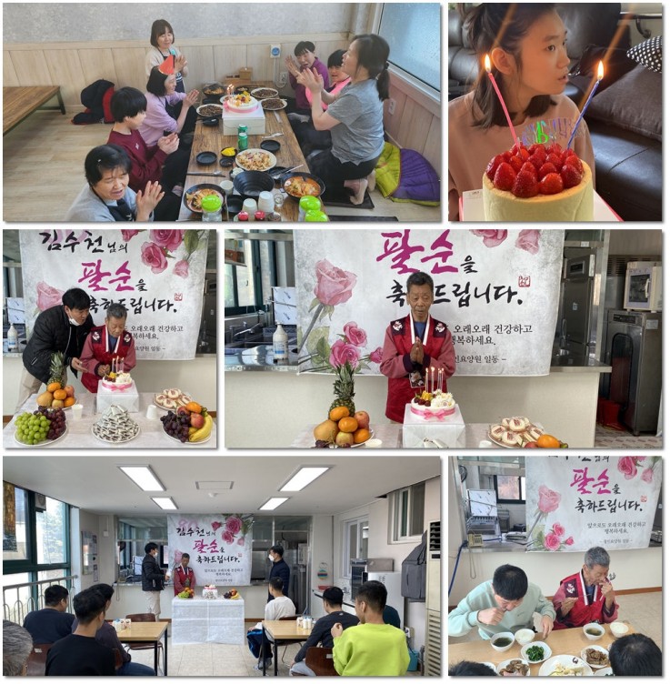 창인요양원 이용인 2월 생일파티입니다. 특별히 이번 2월 생일자  중 김o천님 팔순을 축하하는 자리를 마련하였습니다.