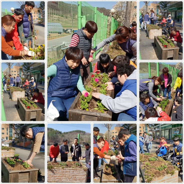 4월 식목일을 맞이하여 요양원 거주인들과 종사자들과 함께 자연학습체험 및 화단가꾸기와 환경정리를 하였습니다.