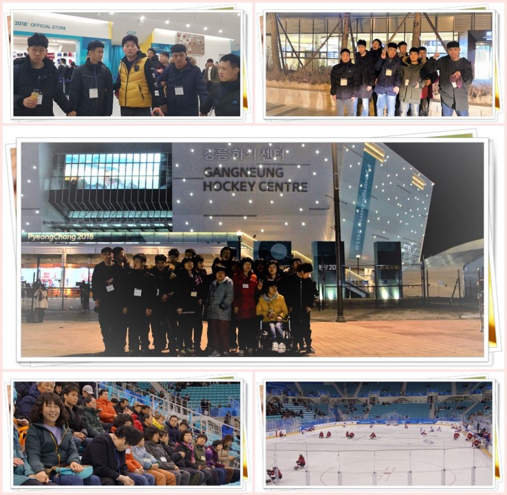 강릉에서 열리는 페럴림픽 아이스 하키 경기를 관람하고 다같이 열띤 응원을 하고 왔습니다.
