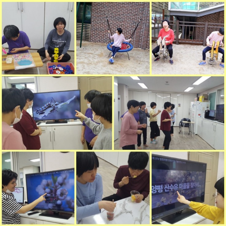 창인재활원 늘해랑실 이용인들은 4월 한달 동안 산책, 스트레칭, 운동장 이용, 놀이기구, 봄꽃과 곤충에 대해 알아보기,