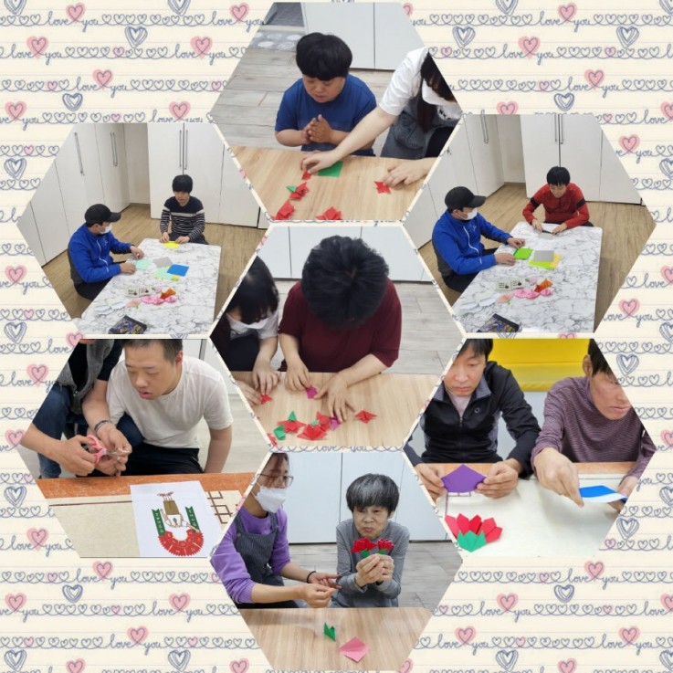 편지쓰기 및 카네이션 만들기 활동을 했습니다. 카네이션 접기를 통해 부모님에 대한 이야기를 나누고 보고싶은 마음을