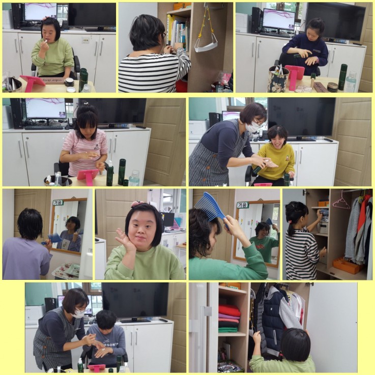 늘해랑실 이용인들의 자조활동의 일환으로 개인사물함 정리와 용모가꾸기 시간을 가졌습니다.