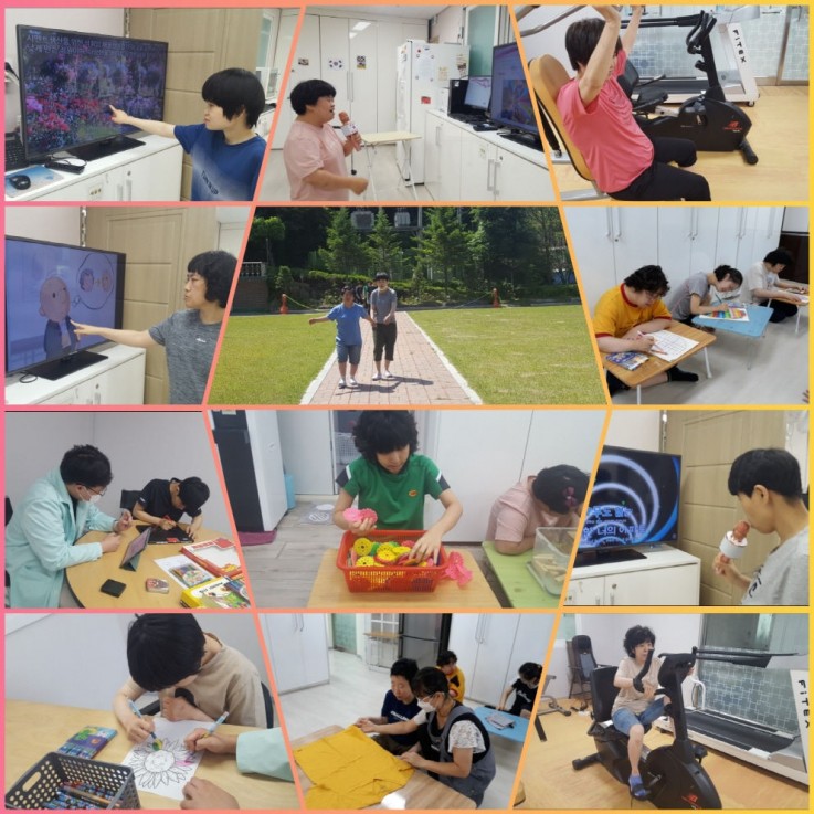 생활훈련, 자조, 산책, 운동장 활동, 미술, 노래방, 수조작 활동, 시청각 활동 등 다양한 활동을 하였습니다.