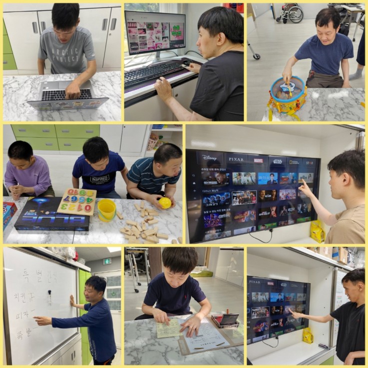 창인재활원 한누리실 이용인들은 5월 한달 동안 컴퓨터 이용한 정보검색, 가족회의, 금전관리, 자산현황 알기, 시청각활동,