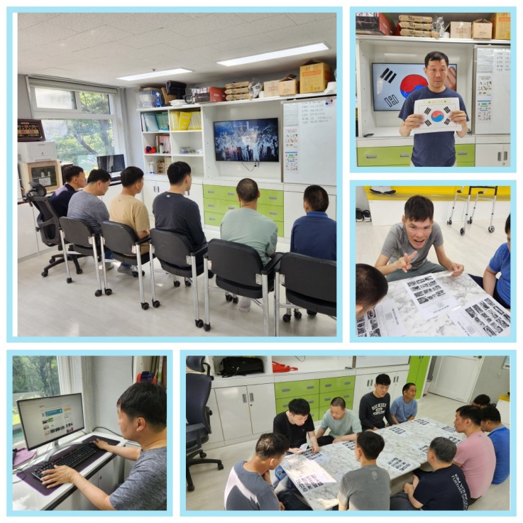 창인재활원 한누리실 남자 이용인들은 6월 한달 동안 '호국보훈'의 의미를 알아보며 시청각활동, 태극기 그리기, 자산알기,