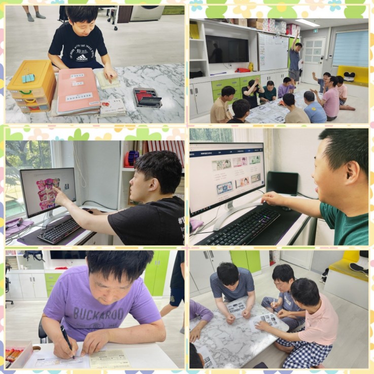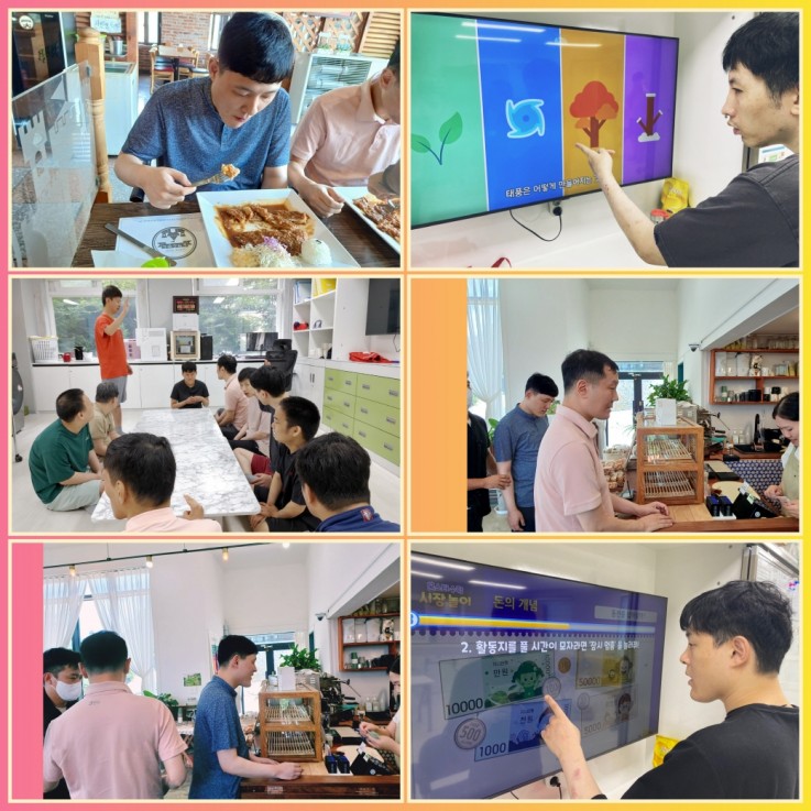 창인재활원 한누리실 이용인들은 7월 한 달 동안 여름철 위생교육, 가족회의, 자조, 자산알기, 화폐 단위 알기, 경제활동,