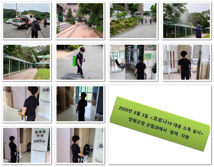 양평군청산림과에서 창인원 전체 방역을 지원해 주셨고 창인홈 자체에서도 소독 하였습니다.