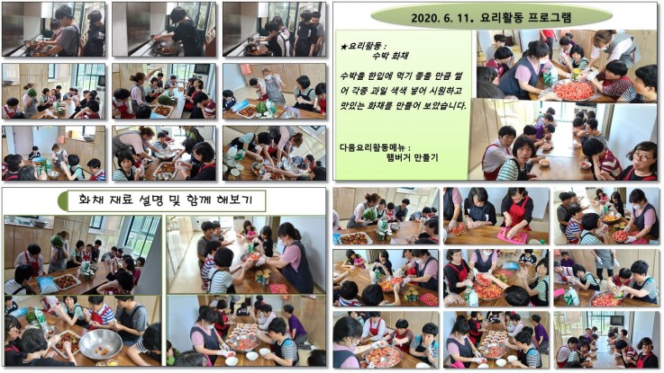 요리활동으로 수박 화채를 만들어습니다.