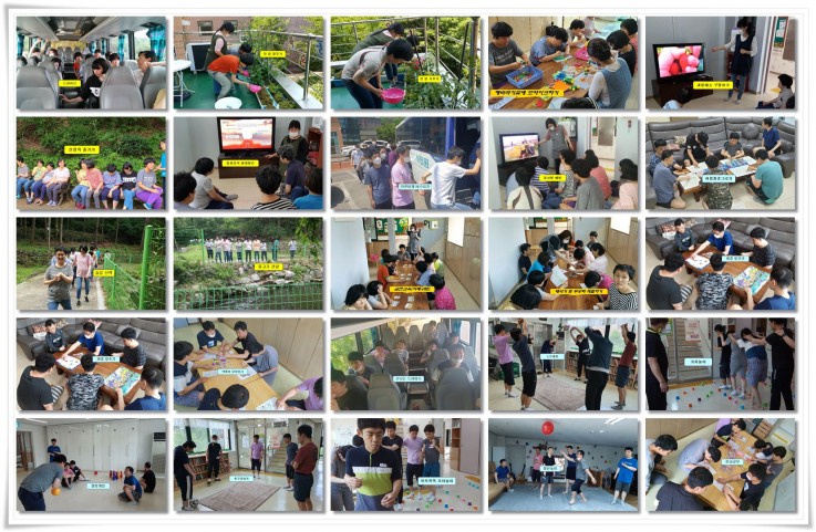 재난안전교육), 자립교육(자신의 물건찾기, 정수기 사용법,청결한 생활습관 교육) 운동영역(산책, 요가, 스트레칭, 축