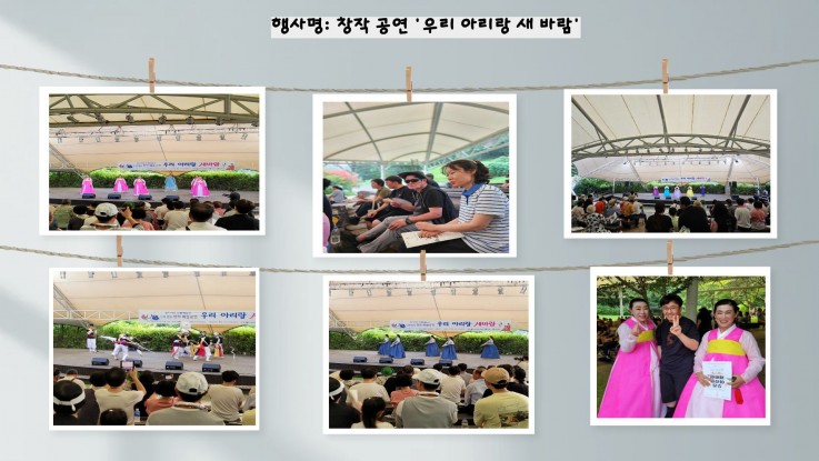 2025년 8월 23일 용문산 야외 공연장에서 공연이 열리고 '우리 아리랑 새 바람' 공연은 전통과 현대가 아름답게 어우러진 창작 무대로 펼쳐졌습니다. 정말 특별한 경험이었습니다. 특히 양평의 역사와 지명, 아름다운 자연경관 그리고 흥미로운 설화들을 바탕으로 새롭게 창작된 '양평팔경아리랑'과 '두물머리아리랑'이 이날 무대의 중심을 빛냈습니다. 소리꾼 김용우님의 열정적인 무대가 공연의 절정을 이끌어냈고, 관객들이 모두 어깨를 들썩이며 하나가 되는 멋진 장면을 연출했습니다. '우리 아리랑 새 바람' 양평 공연은 전통과 현대의 조화를 통해 대중에게 아리랑의 새로운 매력을 선보이고, 양평의 지역적 특색을 성공적으로 담아낸 공연이었어요. 앞으로도 이런 멋진 창작 공연들이 더욱 활발하게 진행될 수 있기를 기대합니다.