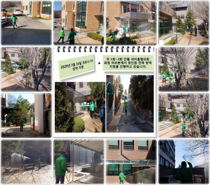 코로나19확산 방지를 위한 전국민적인 노력이 펼치고 있는 가운데 우리 창인원에는 단월 새마을협의회에서 주1회~2회 창인원 전체 방역을 지원해 주시고 계십니다.