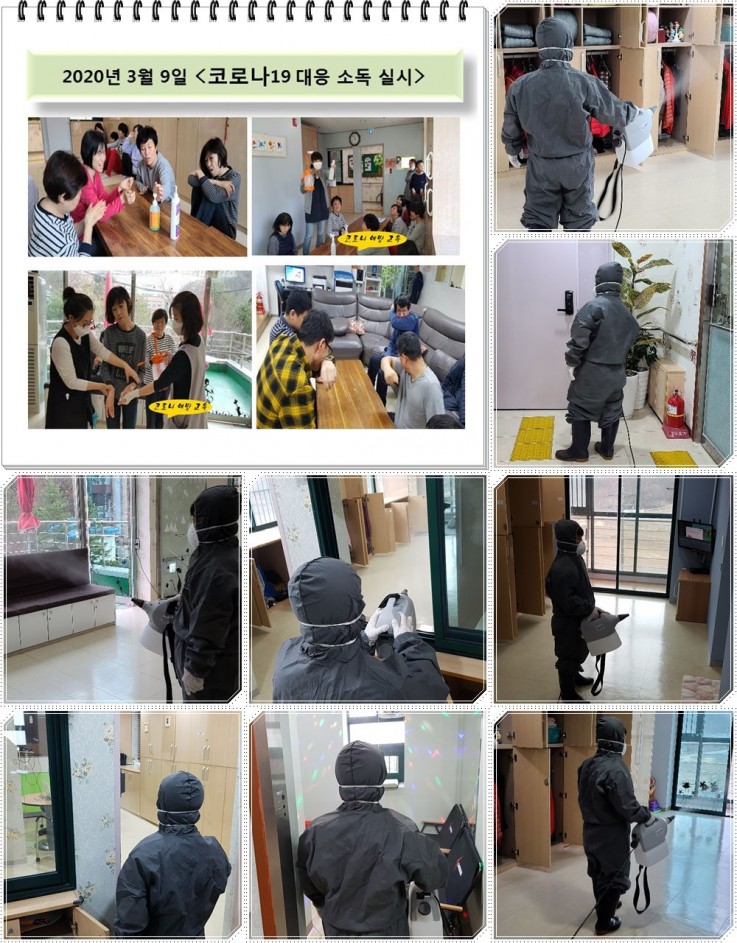 2020년 3월 9일.10일【이용인 감염 예방 교육 및 코로나19 대응 소독 실시】