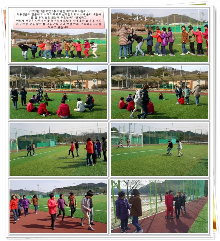 맑은 하늘아래 따듯한 봄 햇살 받으며 우리는 여러가지 놀이를 했습니다. 동대문 놀이, 수건돌리기(폐트병을 이용), 페트병 축구, 산책하기 등.. 소리내어 웃으며 , 봄다운 봄을 기다리며,,...